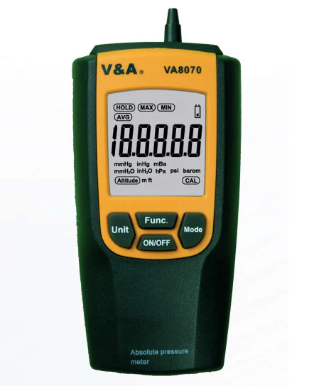 VA8070 is normally used to measure absolute pressure, eg. for pressure compensation in velocity measurement in ducts, laboratories and production processes.