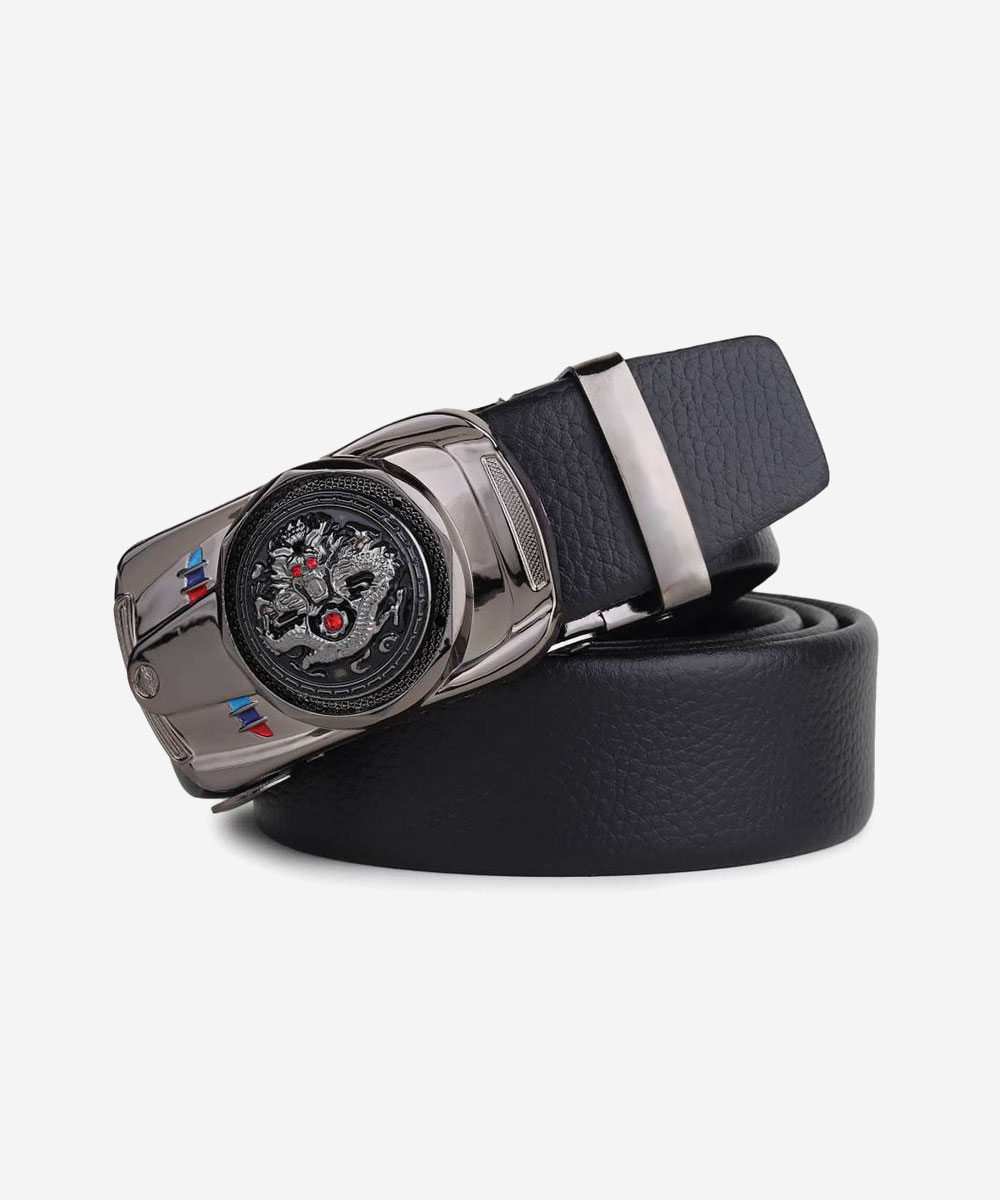 Unique line buckle series belt made of zinc alloy, polishing technology-more beautiful and wearable; Top layer cowhide leather – double-sided stitching is durable, providing 38 ratchet track adjustment.