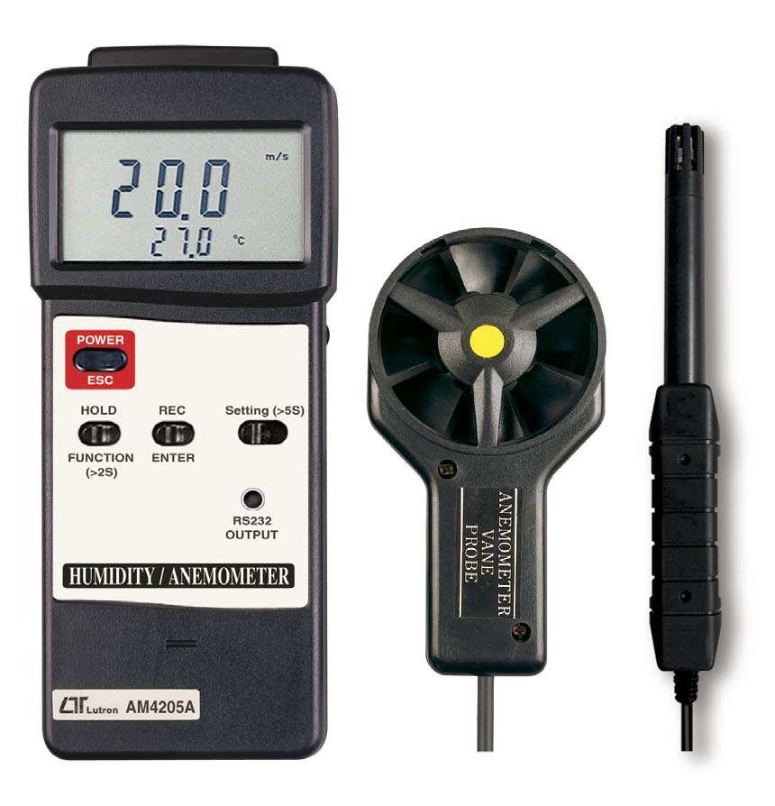 Anemometer, Humidity/Temp and type K/J thermometer are combined into one meter in an intelligent design