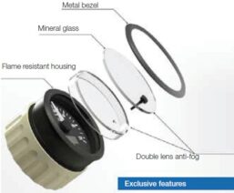 It is equipped with a ring nut for mounting into a standard 3-3/8 in. (86 mm) dash mounting hole. A full 240° sweep of the pointer gives an accurate indication on a large easy-to-read scale, and the dial can be illuminated for night reading.