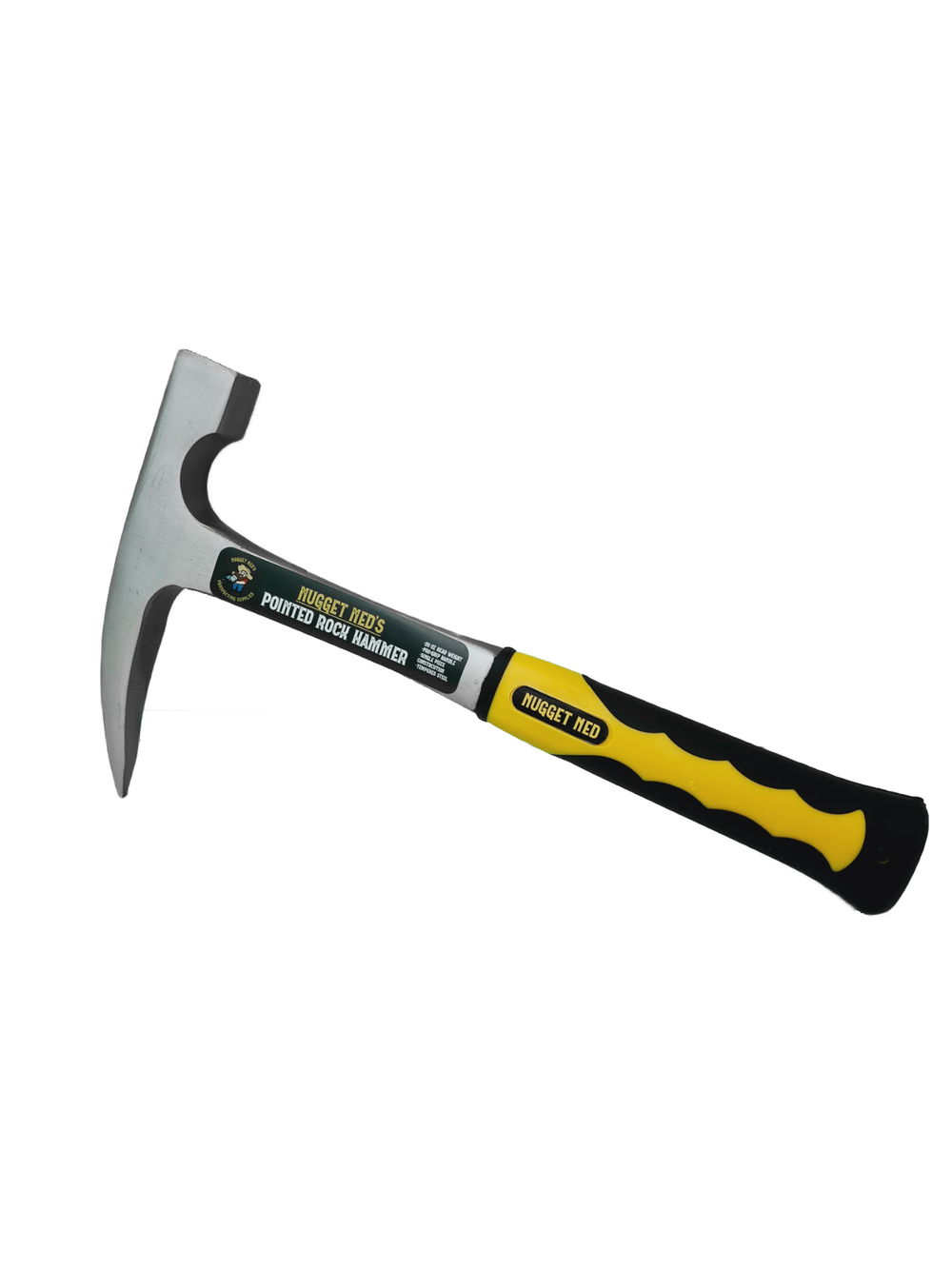 Nugget Ned’s Pointed Rock Hammer is the perfect tool for extracting gold out of those hard to get to places. Smash and chip your way to the gold that awaits. Hardened, tempered and made from a single piece of steel this is a seriously strong tool for some mighty hard work. Features a super comfortable rubber “‘Pro-Grip” handle, it is sure to keep those blisters at bay. In addition it comes with a reusable plastic tip to protect this premium quality tool.