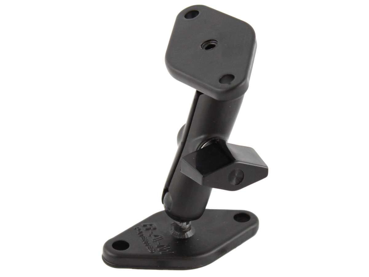 The RAM-A-101U consists of a double socket arm and two diamond bases. The diamond bases measure 2.43″ x 1.31″ diamond base and contain two holes 1.912″ from center to center, positioned at both ends of the diamond base. The hole pattern found on the diamond bases will connect to many RAM cradles, as well as third party cradles including mounts with the industry standard AMPS hole pattern. Designed into the mount is a 0.56″ diameter patented rubber ball and socket system with adjustment points at both socket ends of the arm.