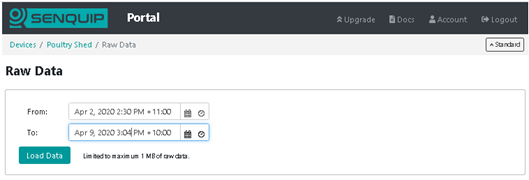 Raw Data is logged at intervals selected by user and can be displayed on screen or exported to file.