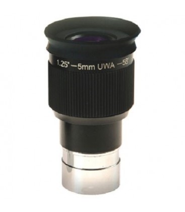 This Skywatcher 5mm 1.25″ Eyepiece offer an amazingly wide 58° apparent field of view and 20mm Long Eye Relief, rivalling some of the leading premium eyepieces on the market. It superb field edge correction and high contrast delivers an better experience while still being competitively priced. Expertly finished in anodized aluminium, it features knurled rubber grips and is threaded for use with standard filters.