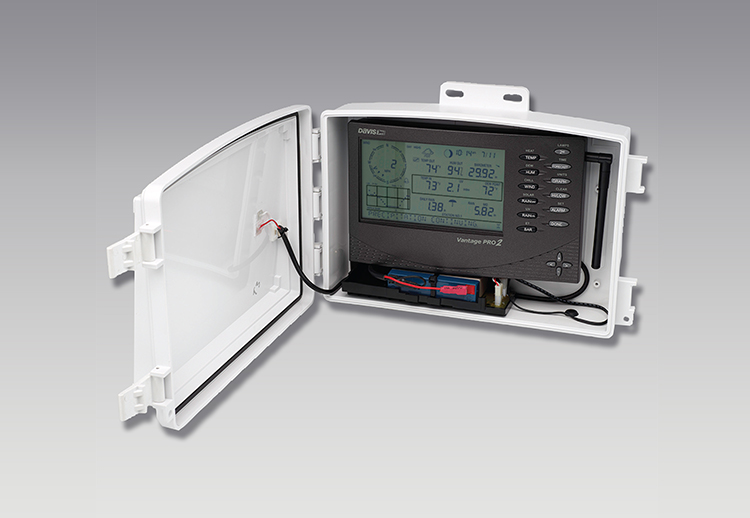 Install your Vantage Vue or wireless Vantage Pro2 console or Weather Envoy outside with solar power and shelter. (For cabled Vantage Pro2 console use the Heavy Duty Solar Power Kit and the Universal Shelter.)