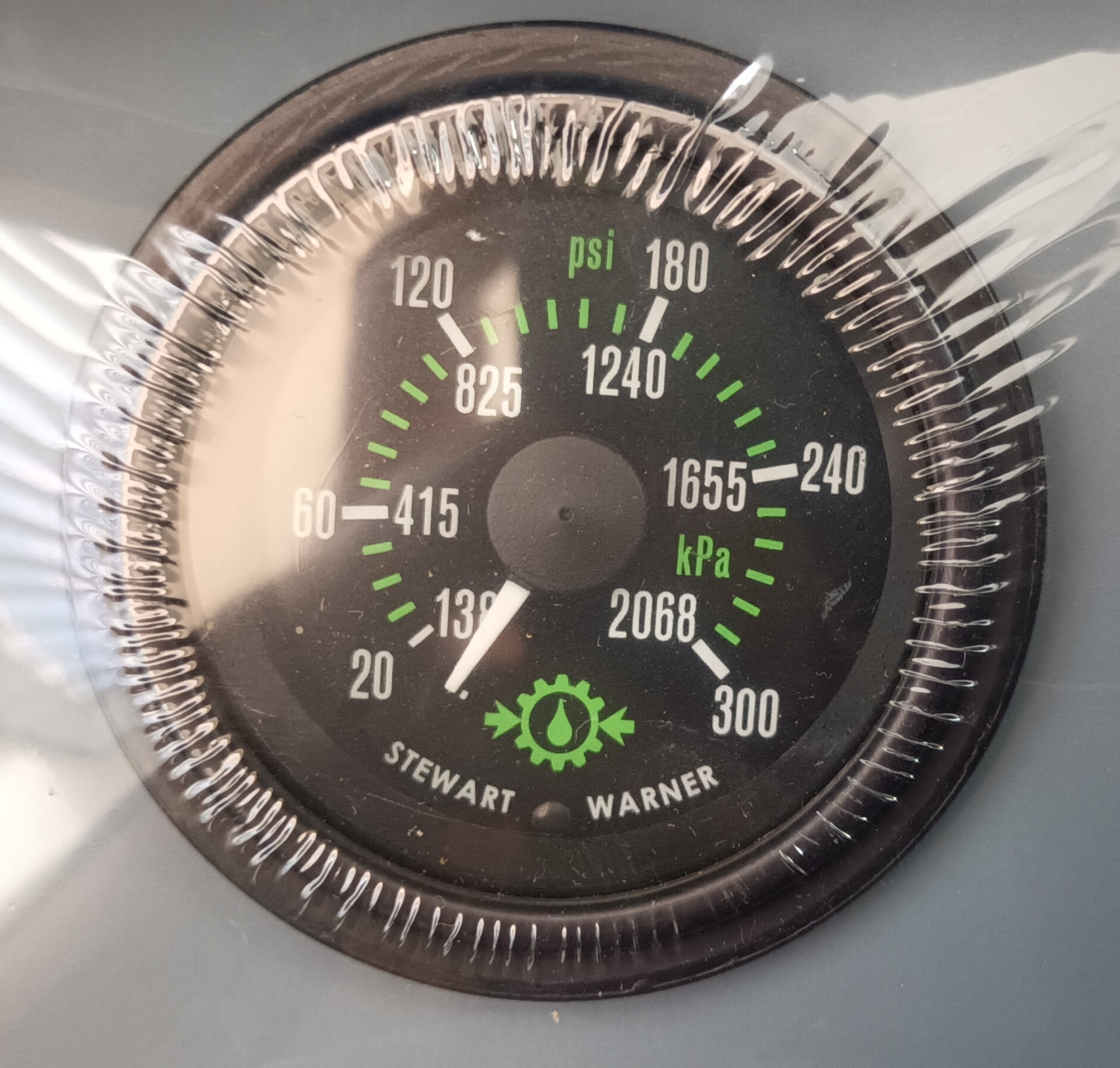 STEWART WARNER DUAL SCALE OIL PRESSURE GAUGE 20~300psi/138~2068kPa 82743